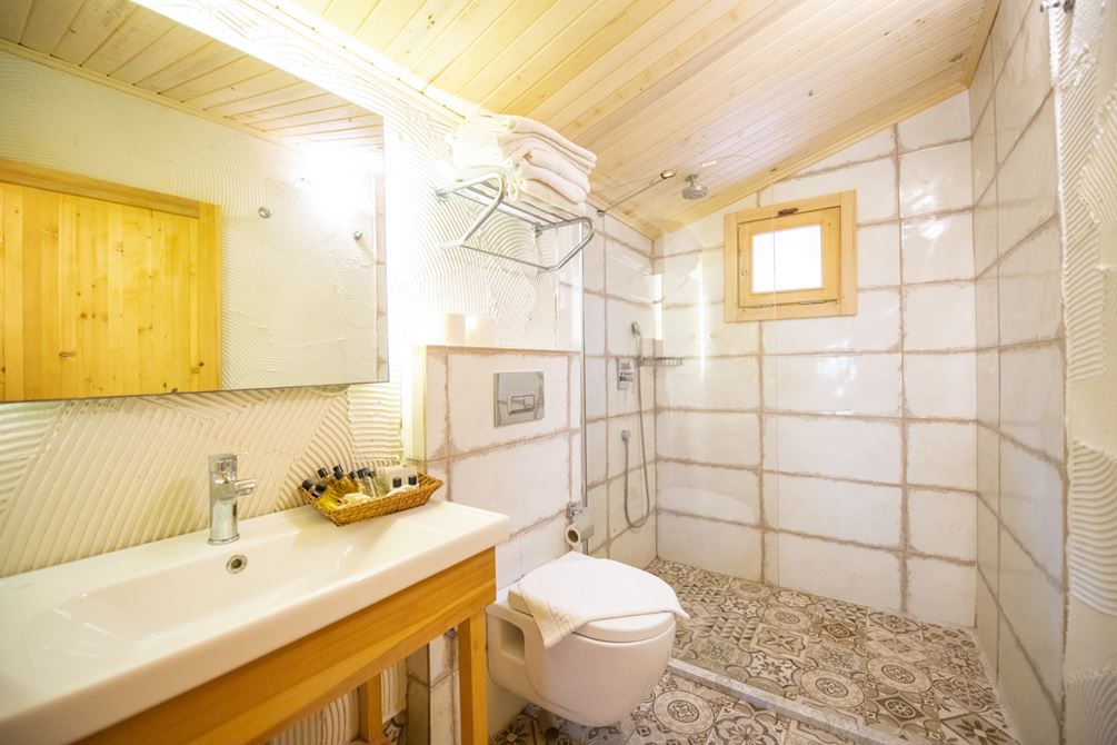 The bungalow usage area is 35 – 40 m². Each bungalow has its own private terrace and private bathroom with shower cabin.